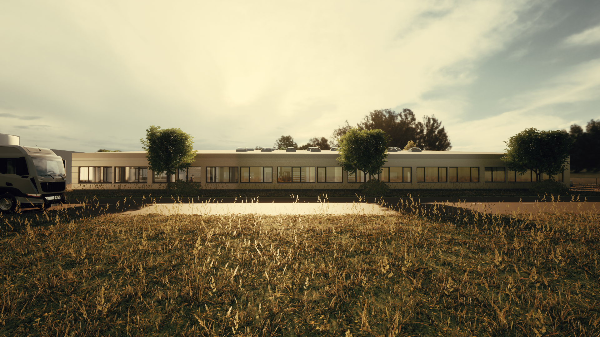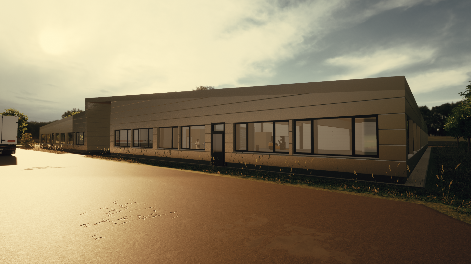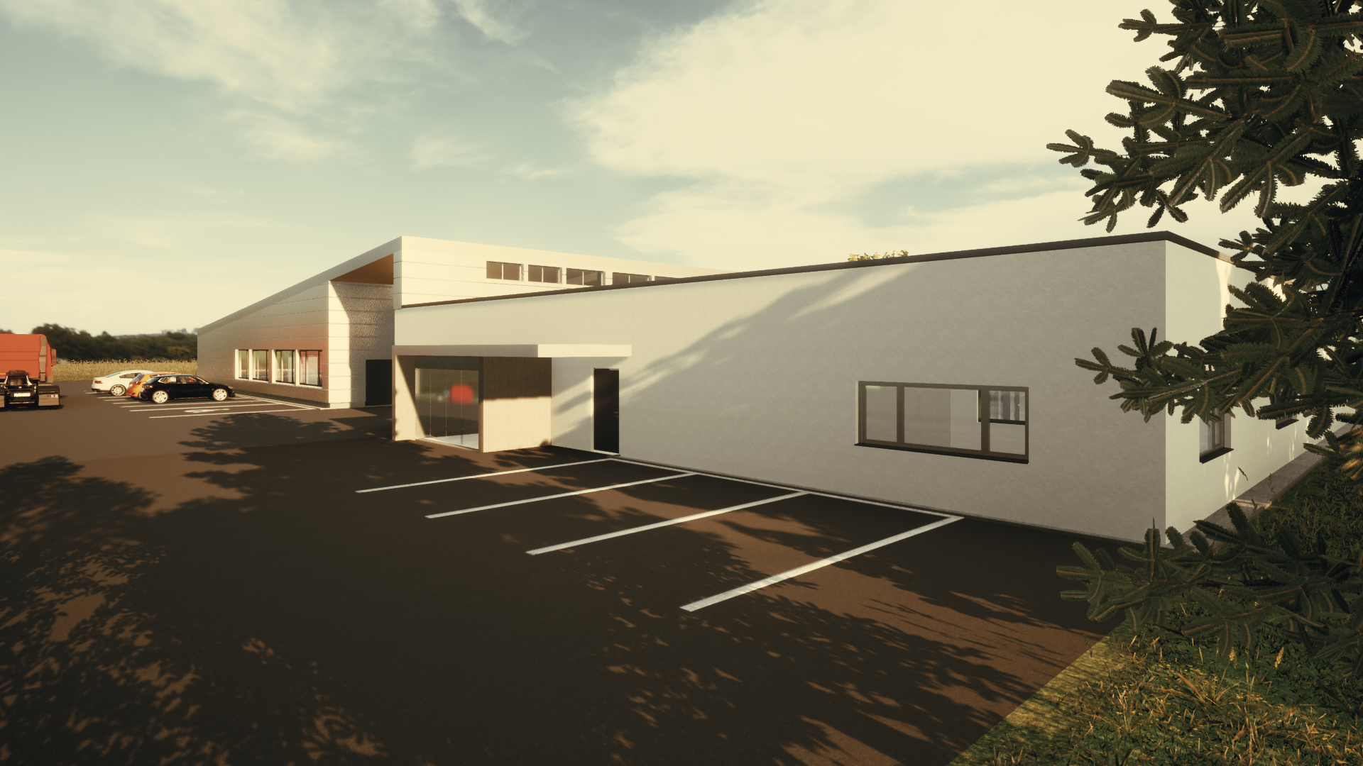 In Zusammenarbeit mit dem Planungspartner (planungsatelier steinwendtner) wurde auf einem ca. 5100 m2 großen Grundstück – Nahe dem Natura 2000 Gebiet – eine Halle im Auftrag einer sozialen NPO (Caritas der Diözese St. Pölten) errichtet, die als Sozialeinrichtung dient und Menschen mit kognitiver und Mehrfachbehinderung Recyclingarbeiten durchführen. Die Halle gliedert sich in zwei Bereiche: zum einen gibt es einen Verwaltungsbereich mit Personalräumen als auch Gemeinschaftsräumen (Bewegungszone, Kantine), zum anderen Arbeits- und Lagerbereiche. Ziel dieses Projektes war, eine Verbindung zwischen der bestehenden Halle am westlich angrenzenden Grundstück und der neu errichteten Halle sowie dem östlich angrenzenden Grundstück des Gemeindeumweltverbandes zu schaffen. Eine lange und breite Magistrale, welche sich in der neuen Halle von West nach Ost erstreckt, erfüllt nun diese Vorgabe und teilt die großzügige Halle somit auch in Arbeitsbereiche im Süden und einen Arbeitsbereich und den Verwaltungsbereich im Norden.