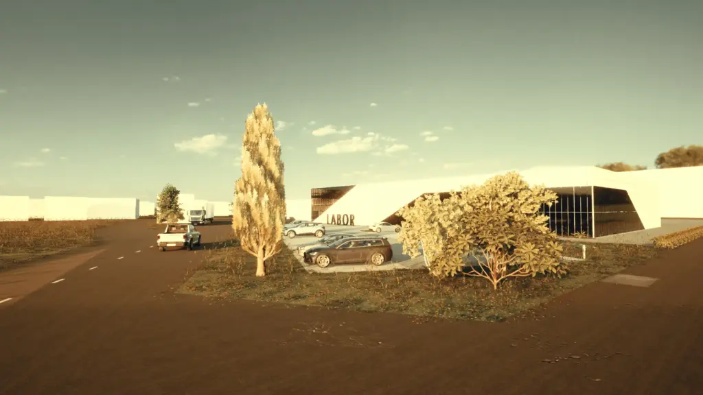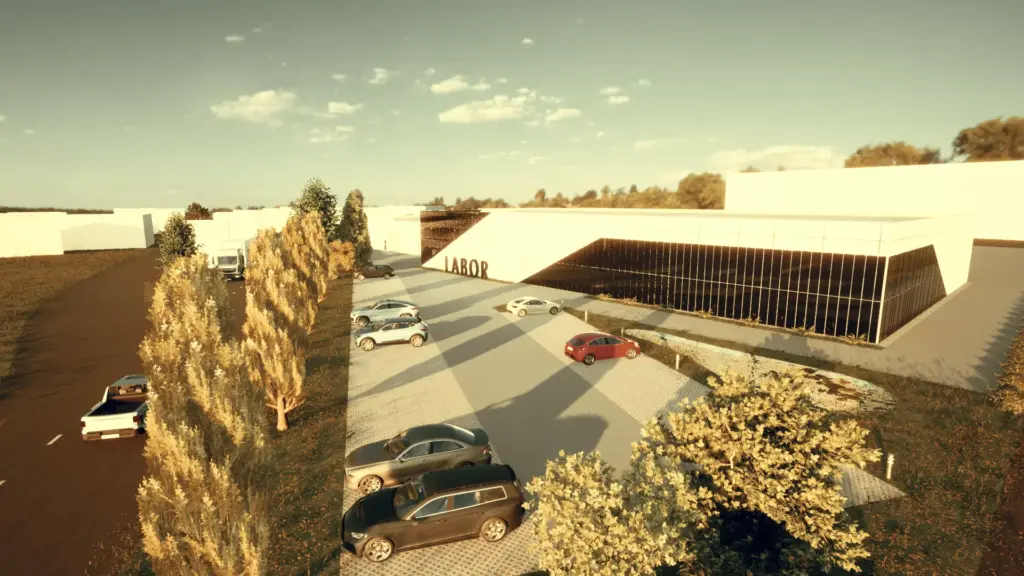 Im Rahmen dieses Projekts wurde eine bestehende Halle rückgebaut und durch einen modernen Neubau ersetzt. Eine zentrale Herausforderung bestand darin, die neue Halle innerhalb der vorgegebenen Kubatur sowie des ursprünglichen Rasters zu realisieren. Die Halle dient künftig als Laborgebäude und kombiniert funktionale Arbeitsbereiche mit flexiblen Büro- und Konferenzräumen sowie großflächigen, hohen Lagerbereichen.